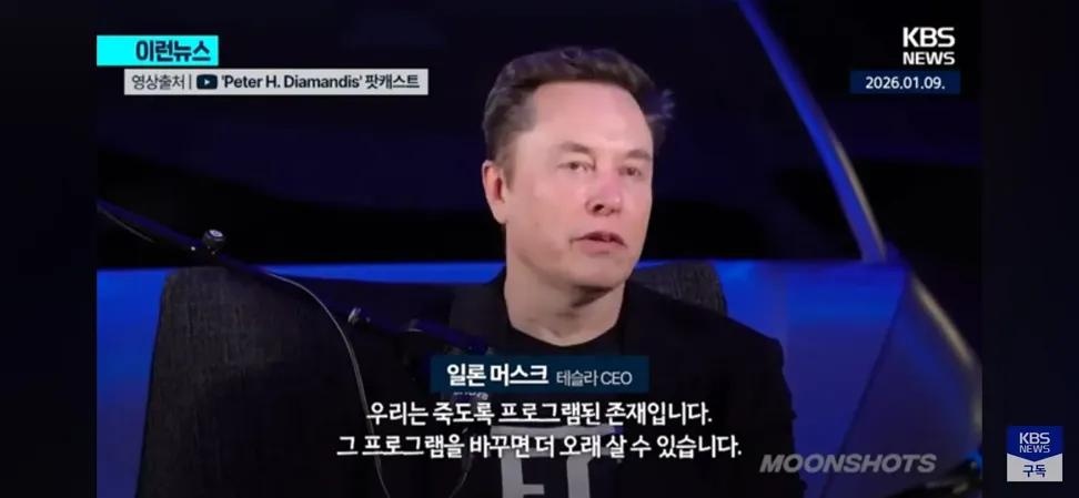 영상을 업로드하고(2026.01.06.) 정확히 이틀 뒤, KBS 뉴스에서 일론 머스크가 저와 완전히 같은 이야기를 하는 것을 보았습니다.